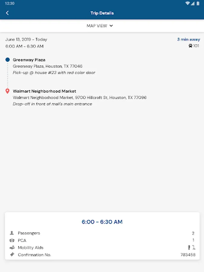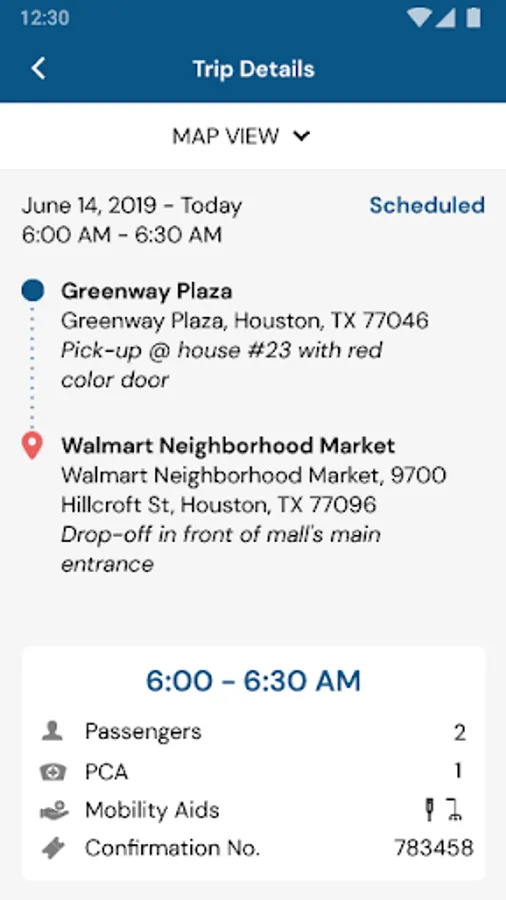 - View same day, future and past reservation information and trip details