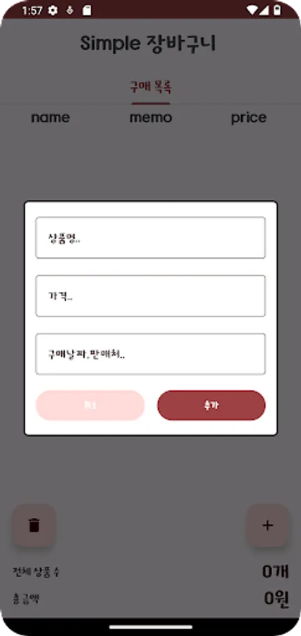 * Enter the product name, memo, and price, and provide product registration and deletion functions.