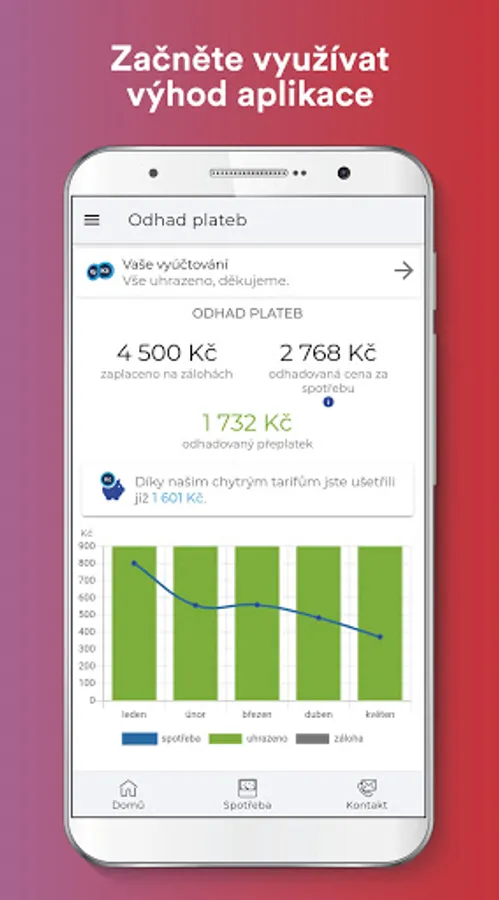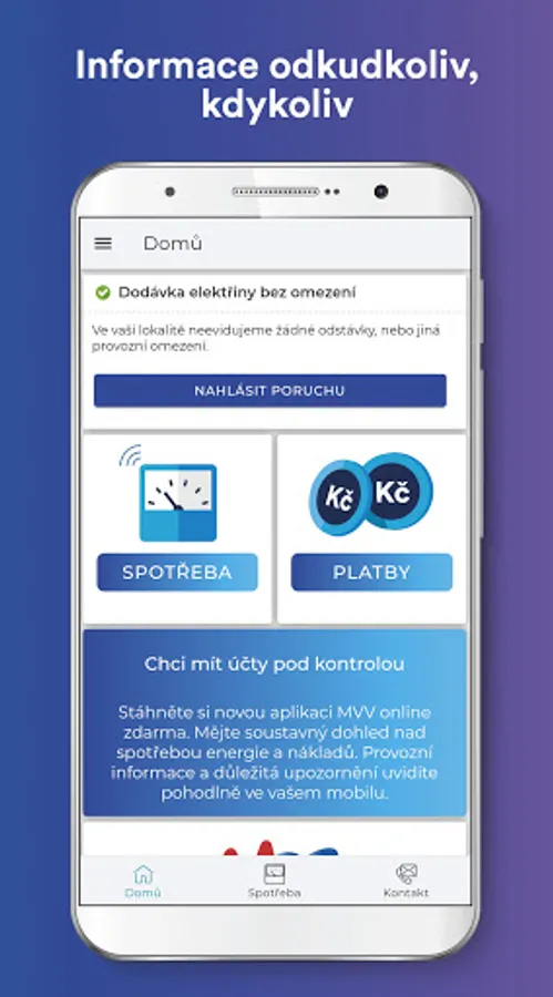 "MVV online - energy consumption under control" is a free and ad-free application for customers of the MVV Energie CZ energy group. With a user-friendly and simple application, you will have constant supervision over energy consumption and costs. With one click, you get an overview and up-to-date information on advances, bills or payments. Operational information or important contacts are also included.