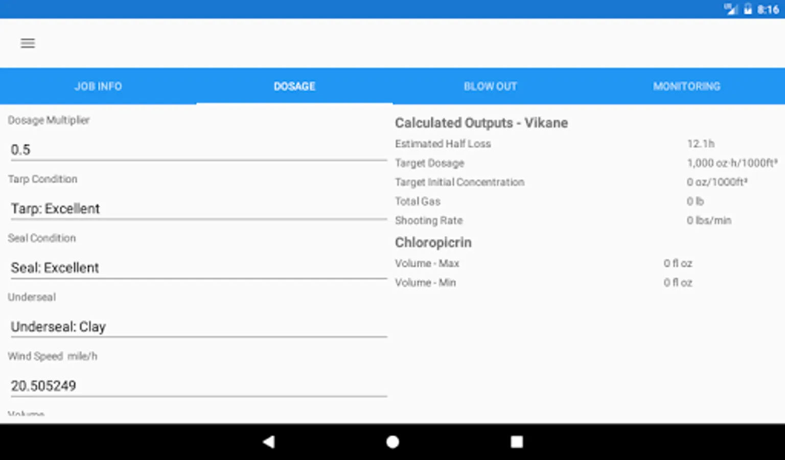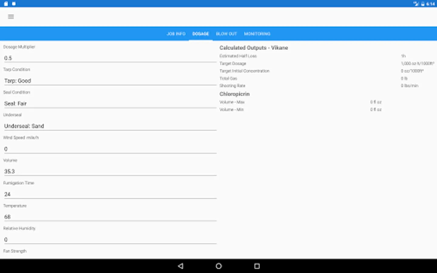 Calculates fumigation dosages, allows for handling blow opens and tracking a fumigation using monitoring.