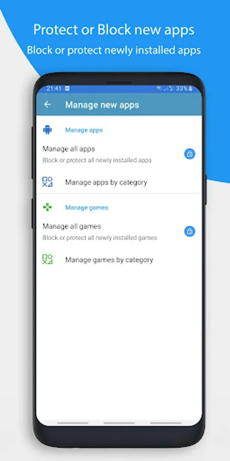 For core features you can automatically add new apps. Choose the type of apps you want to add to a specific type of protection/lock and they will be added as soon as you install them.
