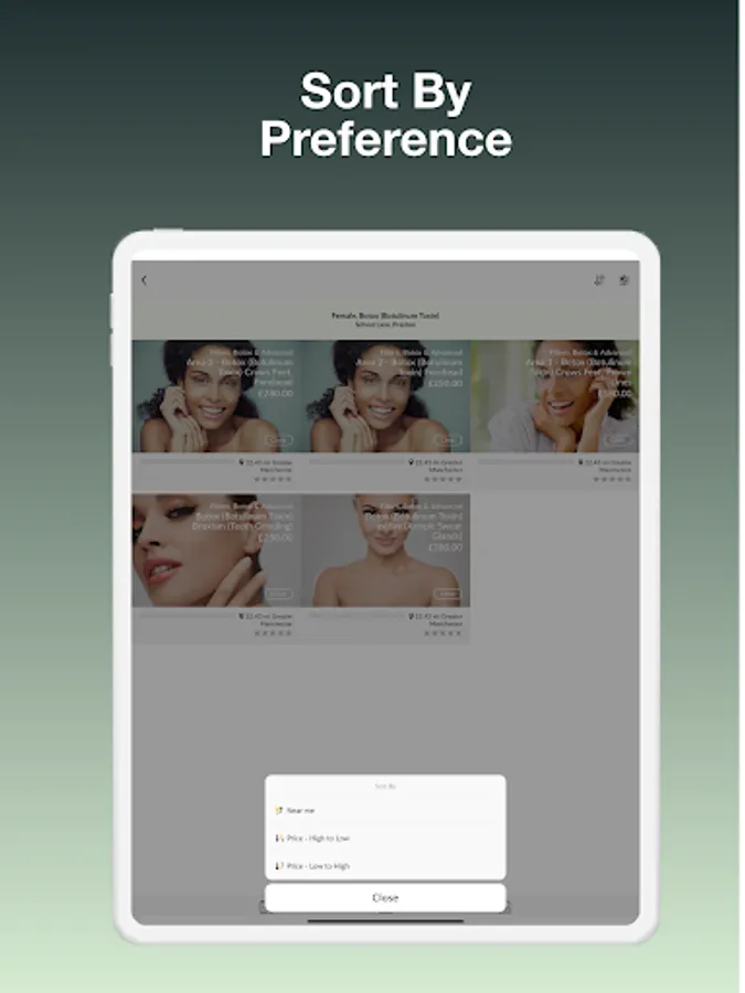 Our advanced search options allow you to instantly find exactly what treatment you're looking for and where you'd like to book your next appointment. Our range of treatments includes laser hair removal, body sculpting, facials, men's treatments, and much more.
