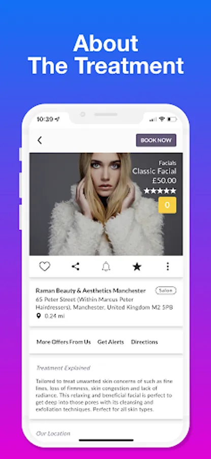 Allows you to instantly find exactly what treatment and which location you’d like to book the next appointment. RANGE OF TREATMENTS