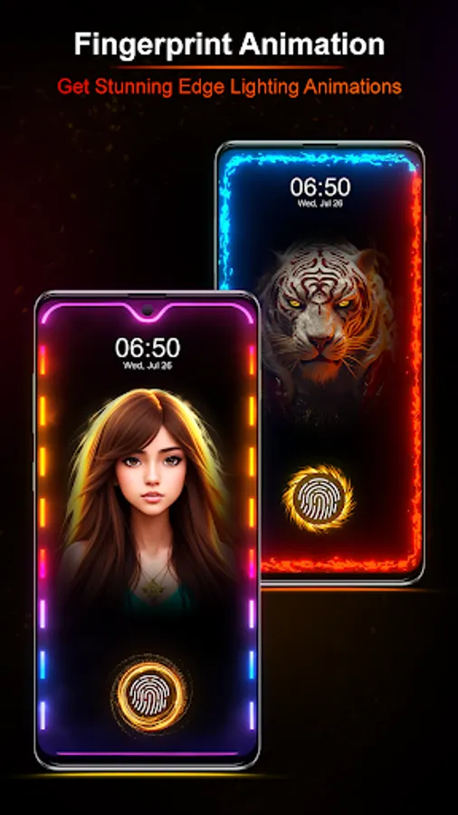 Fingerprint Animation Edge Light with Border light Wallpaper is a unique 🆕 Live wallpaper & true edge light wallpaper animation app 2023 that will make your phone screen look amazing with true edge glow live animation in multiple colors 🌈 along with lock screen fingerprint animation live 2023. 🔒