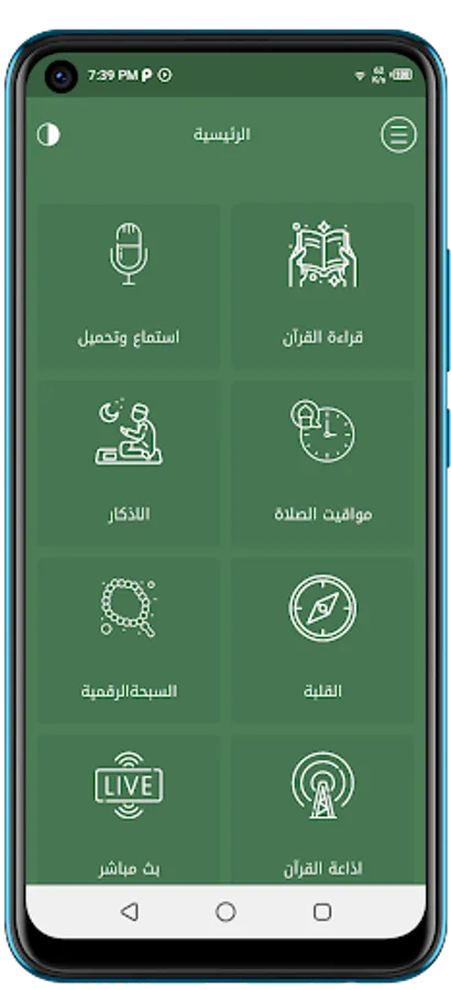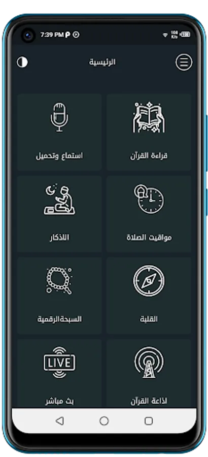 Fourth, the application displays prayer and Qibla times, and it also contains the Holy Quran Radio and the Sunnah Channel for live broadcasting.
