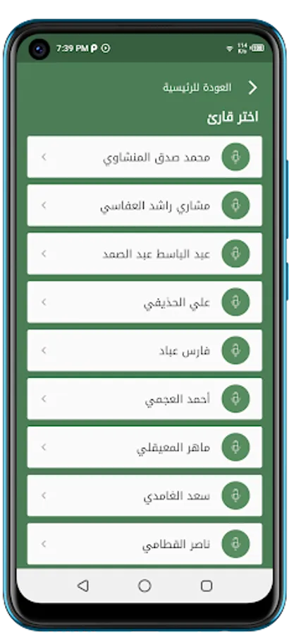 Secondly, you can listen to the Qur’an with the voice of a number of famous sheikhs, and you can also download and save it to listen to it later.