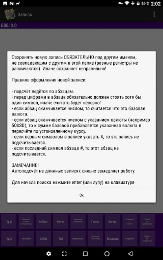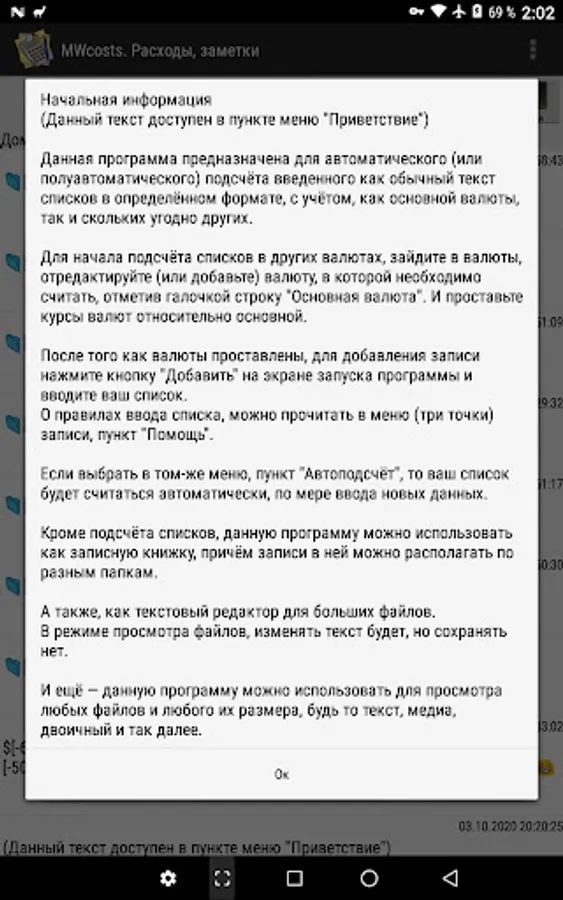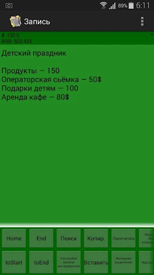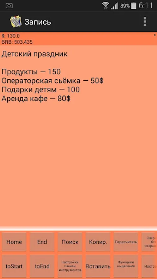 Creation and automatic calculation of lists - for example, you simply type in a normal text a shopping list indicating the approximate purchase price, and the program automatically calculates the total amount you spend approximately.