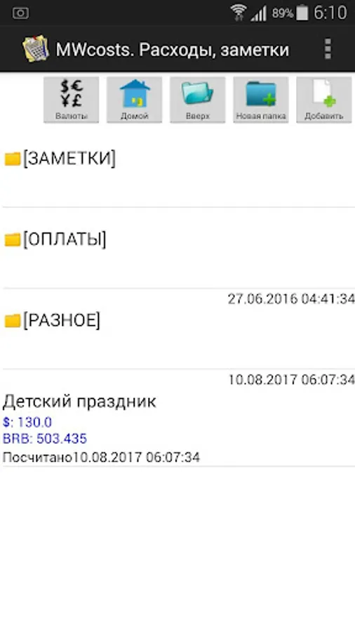 In addition to lists, the program can be used as an application for notes - for this, all entries are located in folders that you also create.