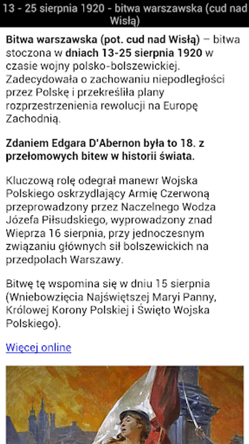 The application includes reproductions of some 119 or 144 known paintings linked to specific historical events from the rich, surprising, full of glory and wonderful events in Polish history (as well as brief descriptions of these events).