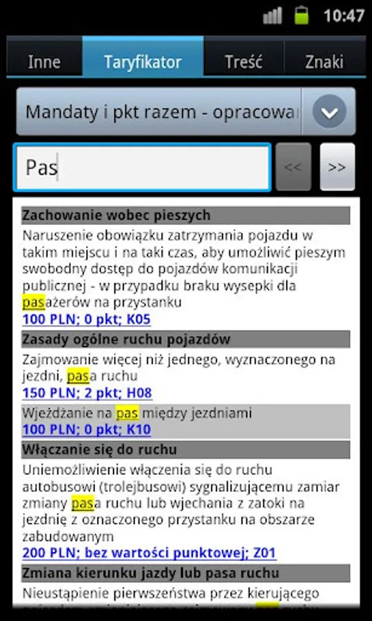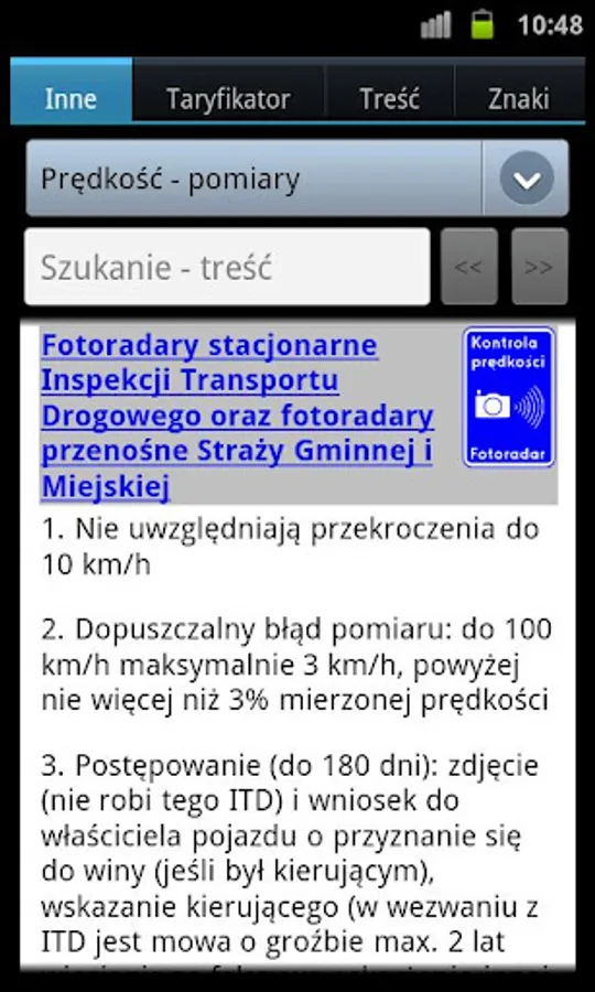 Polish regulations related to road traffic + useful information for drivers (application in Polish language only)