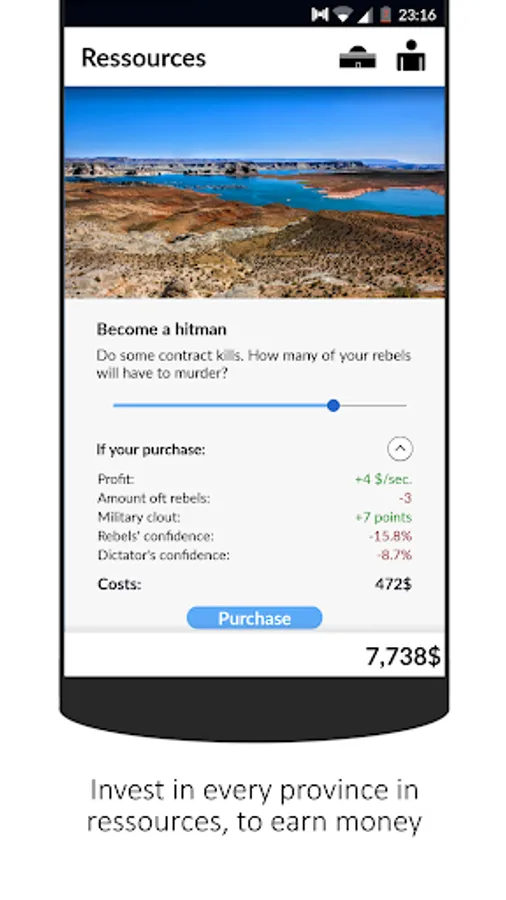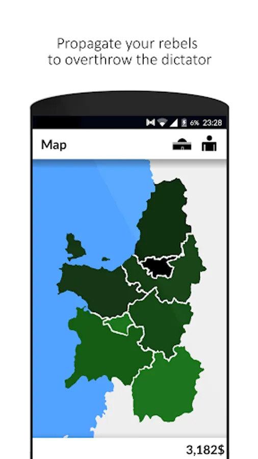• Spend your money on propaganda, to recruit new rebels for your revolution, and to form your own army to overthrow the dictator.