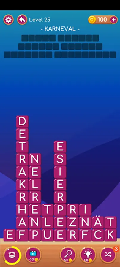 • Nach dem Zusammenbruch der Buchstaben werden neue versteckte Wörter gebildet