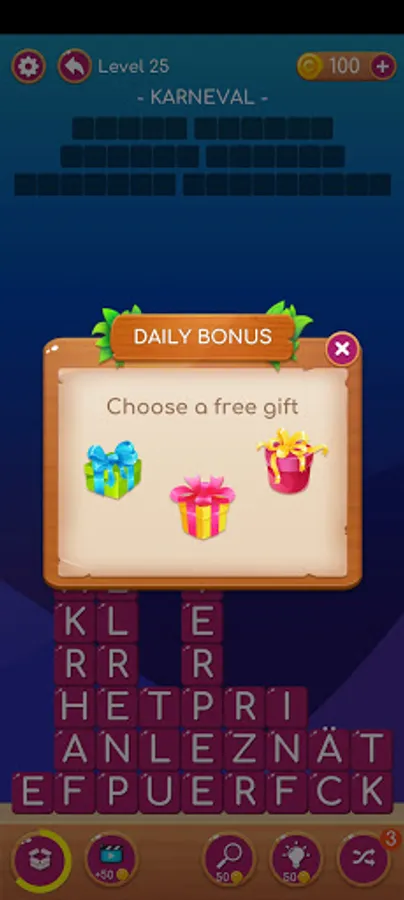 - Wischen Sie die Buchstaben horizontal oder vertikal, um das richtige Wort zu finden.