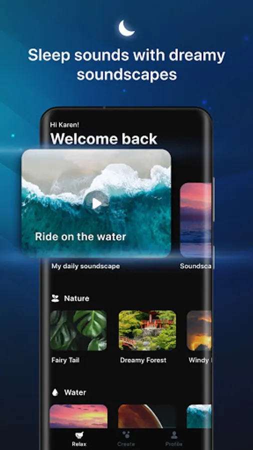 Choose from our regularly updated catalog of 160+ sounds that include : Nature, White noise, Water sounds, City sounds, Binaural Sounds & many more
