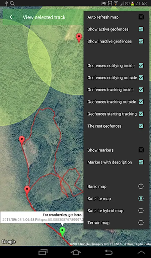- Geographic tracks and notes with current geographic coordinates. Editing and viewing descriptions of tracks markers just from a map.