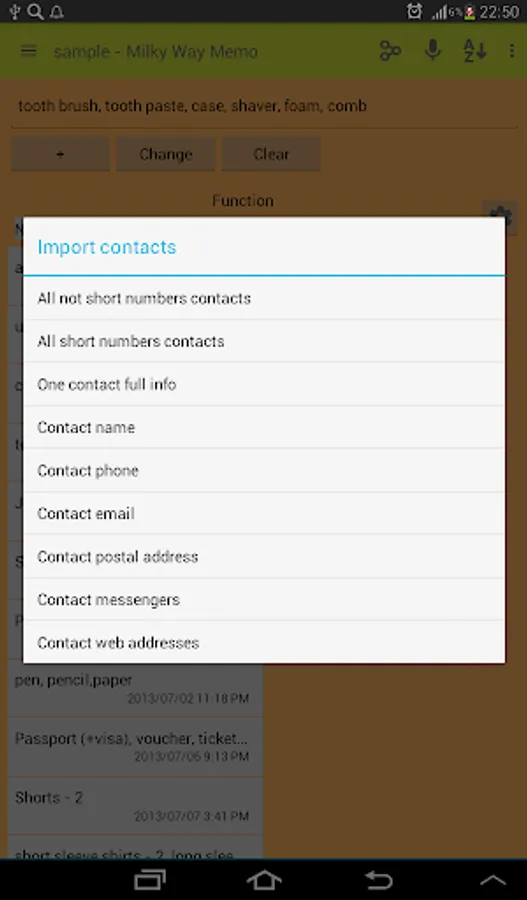 - Notes functions. Call a number, template emails and sms, show geo coordinates or address on a map, open internet link in a browser, define note color and sums calculated for numeric values from notes, custom formulas definition. Sum of values from selected notes.