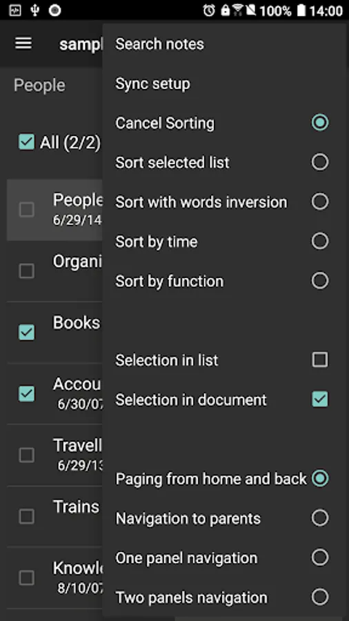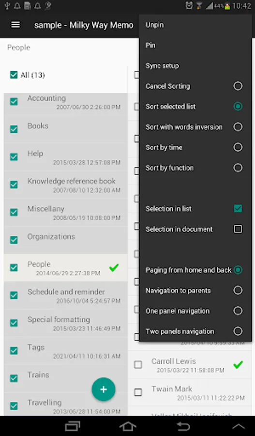- Menu of arbitrary hierarchy creation as well as notes search tags. Speeded up access to information by references. Easy notes navigation by paging. Paging lists of notes in horizontal direction to lists deeper into hierarchy (as in a book) and vertical direction (scroll lists of notes up and down).