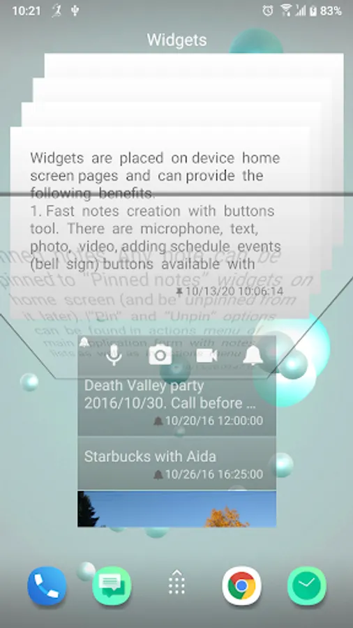 - Widgets for device home screen. All notes. Notes of selected document and list. Schedule. Pinned notes.