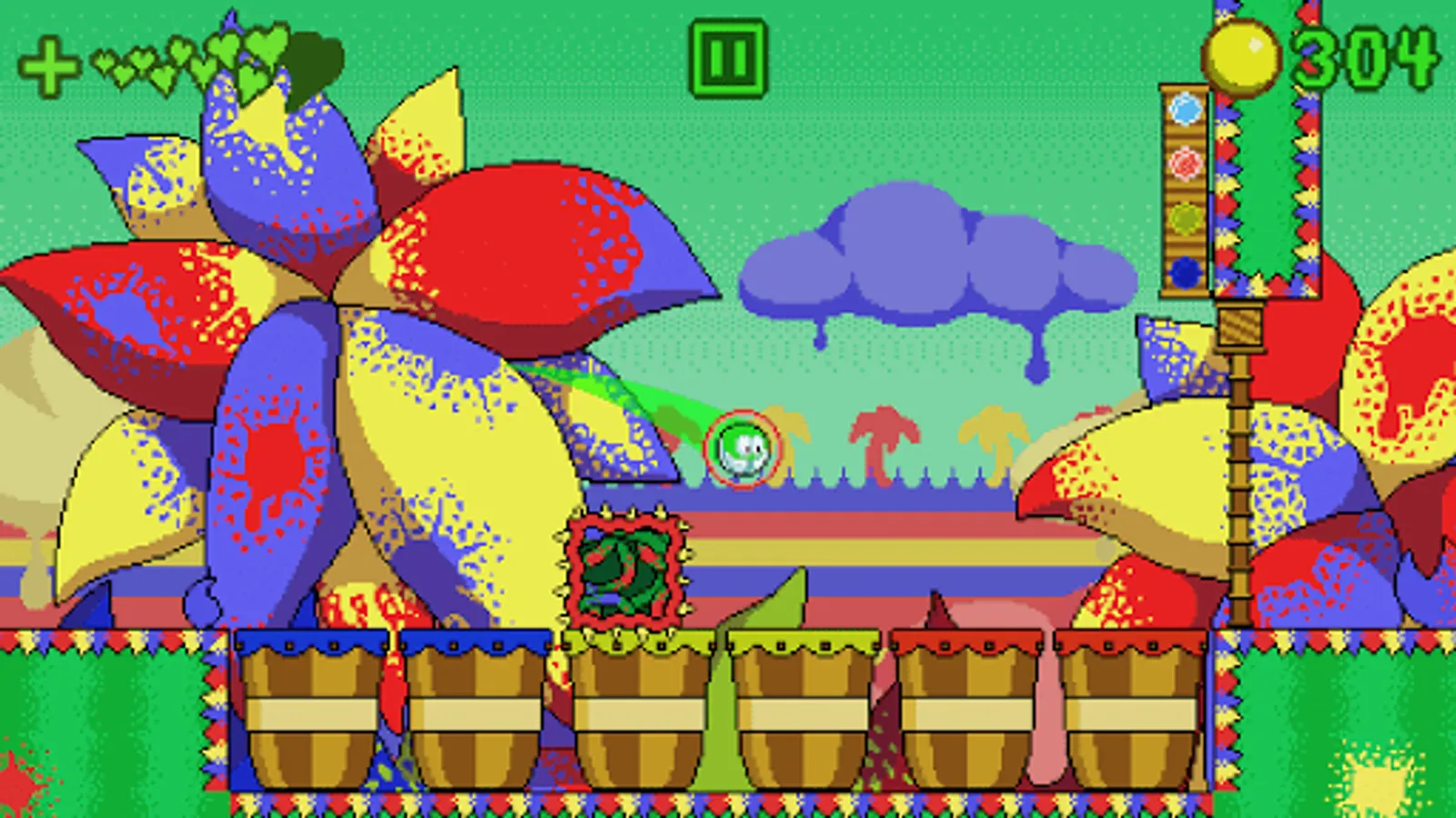 Dribble and his bouncy ball friends were having...well...a ball, until the nasty BizBots showed up! Can you guide Dribble through treacherous and trippy worlds to save his friends?