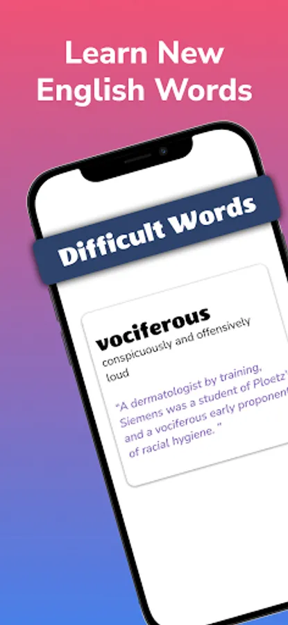 ✅ Pronounciation: English Vocabulary Builder app helps you to pronounce difficult words.