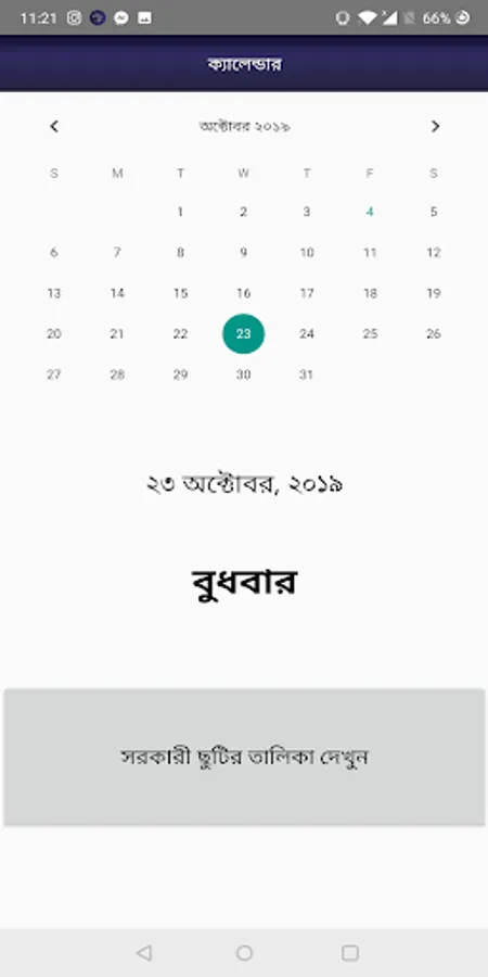 2. Calendar : A Bangla calendar which comes with a list of the government holidays!