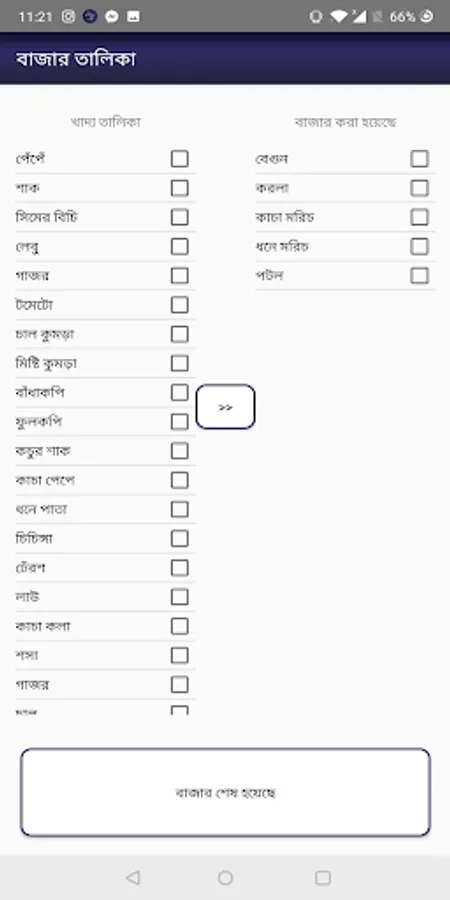 6. Market list : Create your everyday grocery shopping list just by ticking boxes. Tap a button, the list is cleared and you are good to go for the next day again.