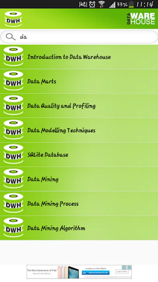 "Data Warehouse" application is designed to know about basic concept of data warehouse.