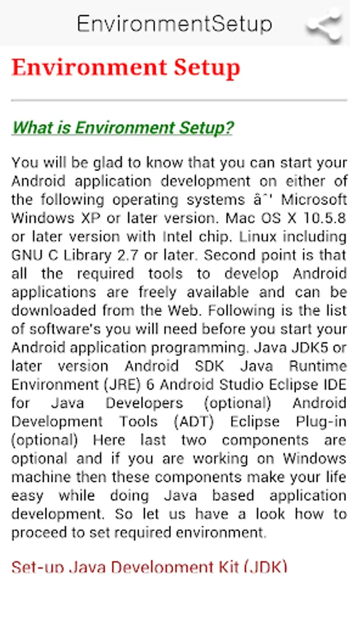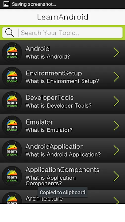 Learn Android app will help you to understand android basic concepts. It contains all important topics understanding you must need before you start your development .