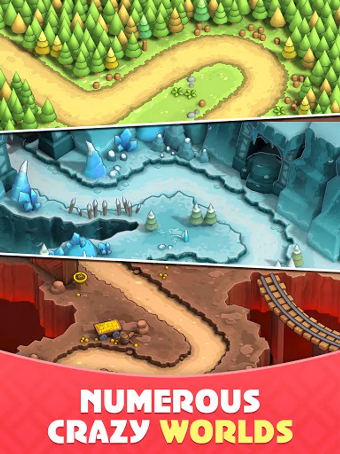 * Epic enemies with iconic features and personalities! Each type has a specific strength and weakness which will challenge your TD strategic planning!
