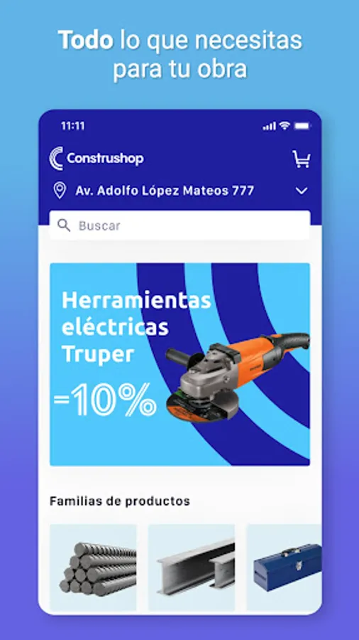 With Construshop, make all your purchases of materials and tools without leaving where you are.