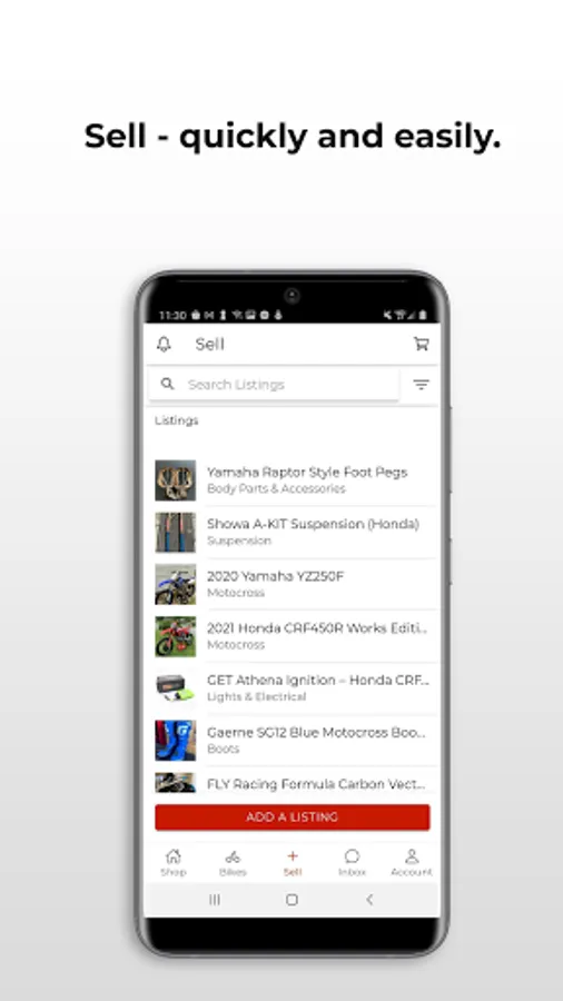 Sell in minutes – snap a photo, set a price, and print a shipping label when the item sells. Cash in on your riding gear or bike parts. List your bike directly for sale on the MX Locker app and reach thousands of members in the dirt bike community.