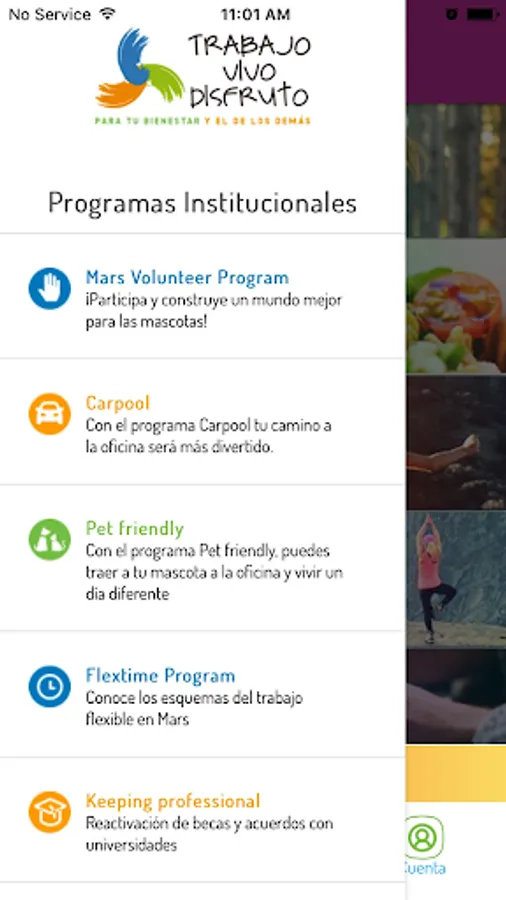 Designed for all Mars Petcare Mexico Associates, this tool presents all activities and resources that are part of the Work Live I Enjoy program. Through articles and videos the associates will be able to select different areas of development such as conscious feeding, intellectual strategy, physical activation, among others. In the section institutional programs will know the benefits and requirements to be part of them. They will be able to know the most relevant news and events of the organization.