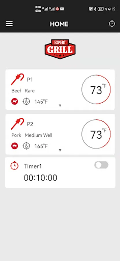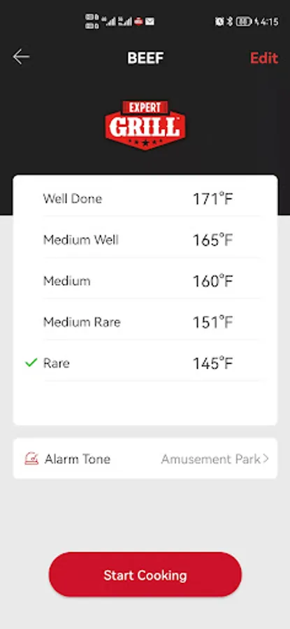 Expert Grill is a companion app for using applicable grill devices. You can use our app to search and connect grill devices with your phone via Bluetooth. You can control the target temp setting and adjust the temp alarm. Furthermore, you can use the app to control the function mode of your grill, and change the temp units on the devices' display.