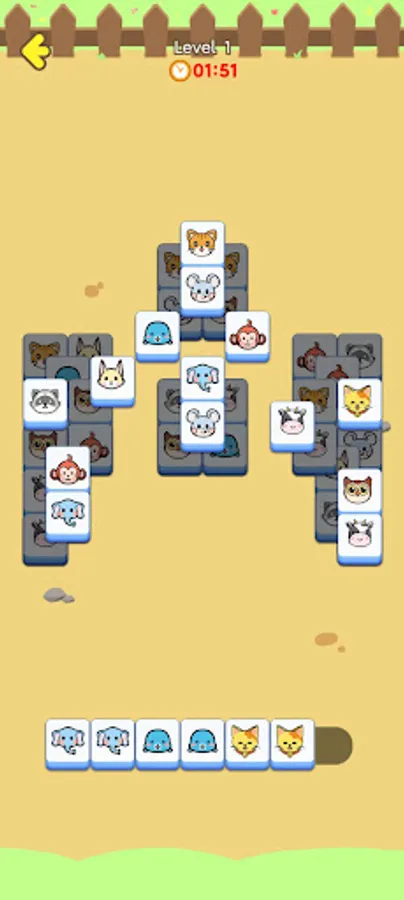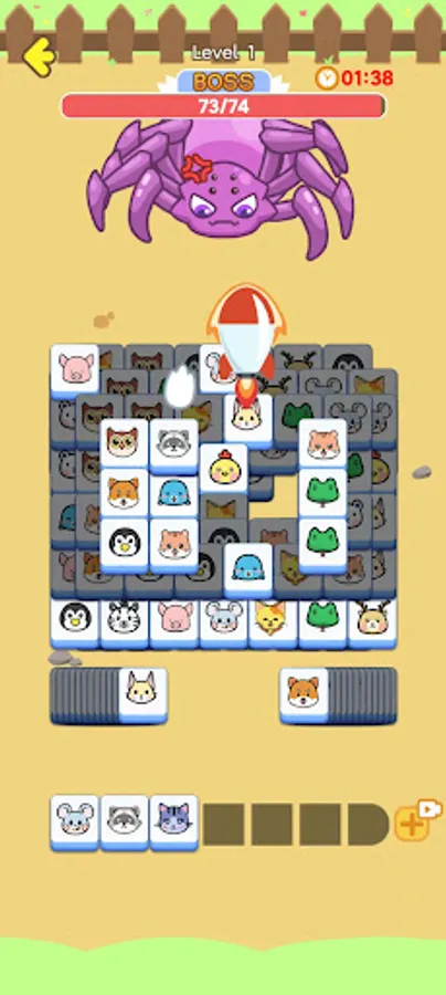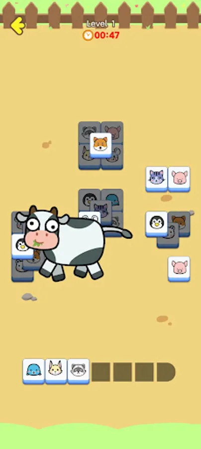 The interface is full of animal modules. Each layer has different animal modules and the same modules. Below is a grid that can hold seven modules. Every time you click a module in the puzzle, it will move to the grid at the bottom of the screen. Each time you match three identical modules in this area, they disappear, leaving room for more tiles.