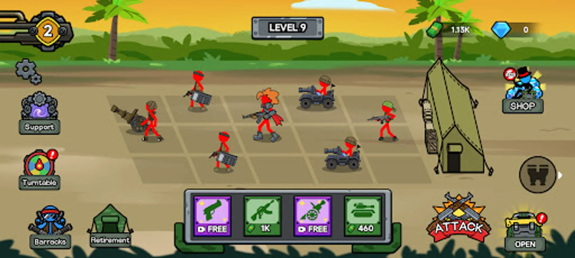 By synthesizing various arms, upgrading levels, increasing combat effectiveness, and defeating enemies! In the store, there are various skins that can be unlocked with diamonds!