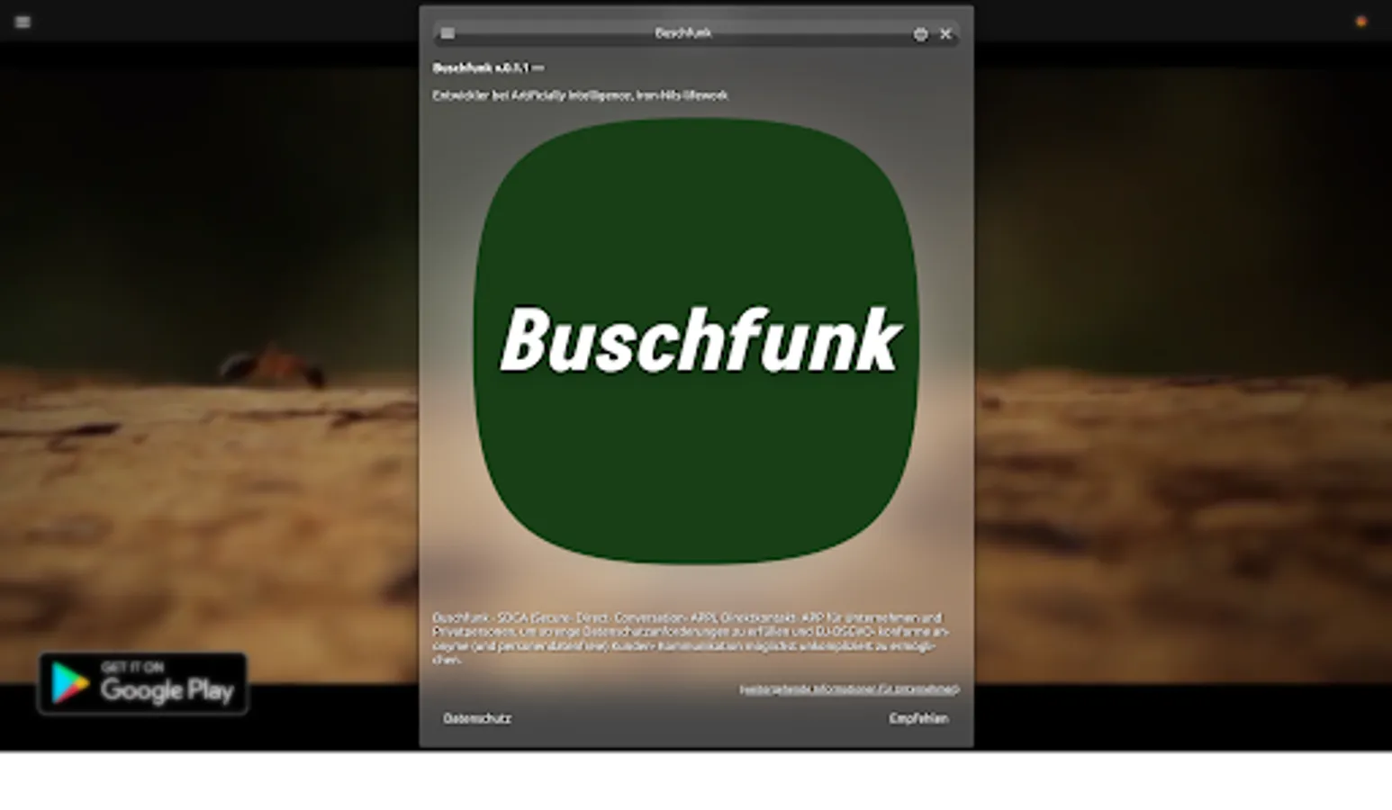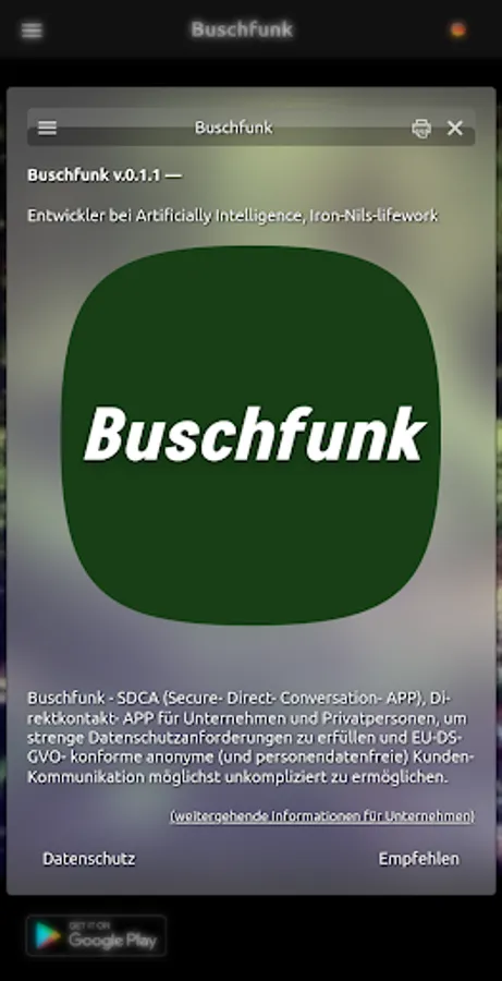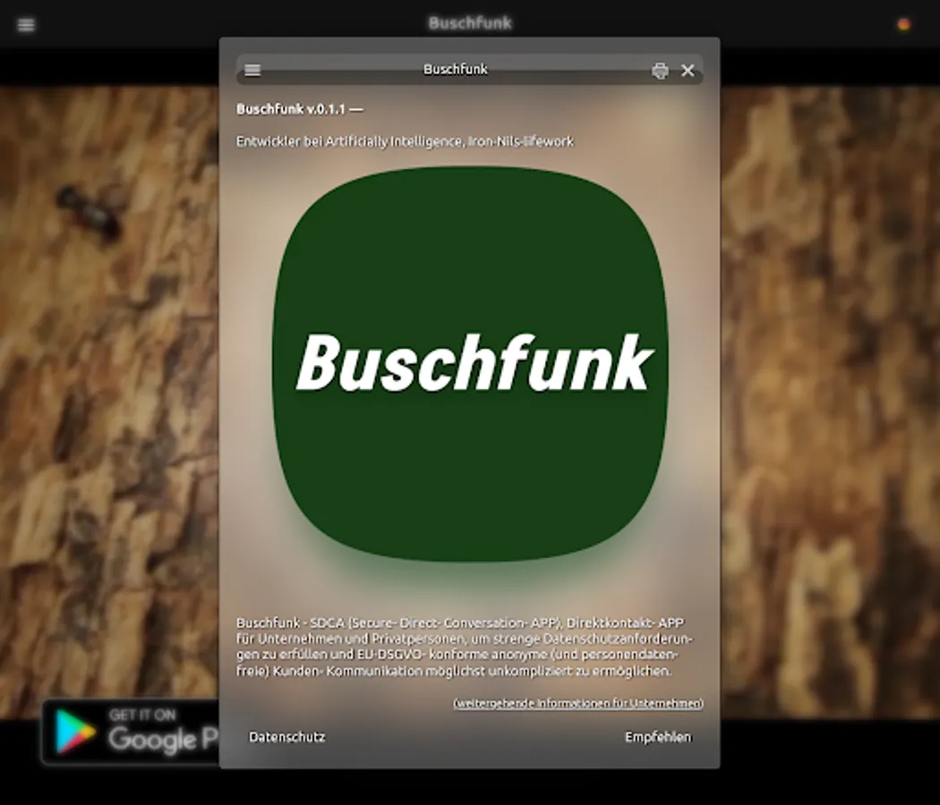 Buschfunk: Personal SDCA (Secure Direct Conversation App) enables you to communicate directly and meets the strict data protection requirements for EU-DSGVO-compliant anonymous (and personal data-free) customer communication.