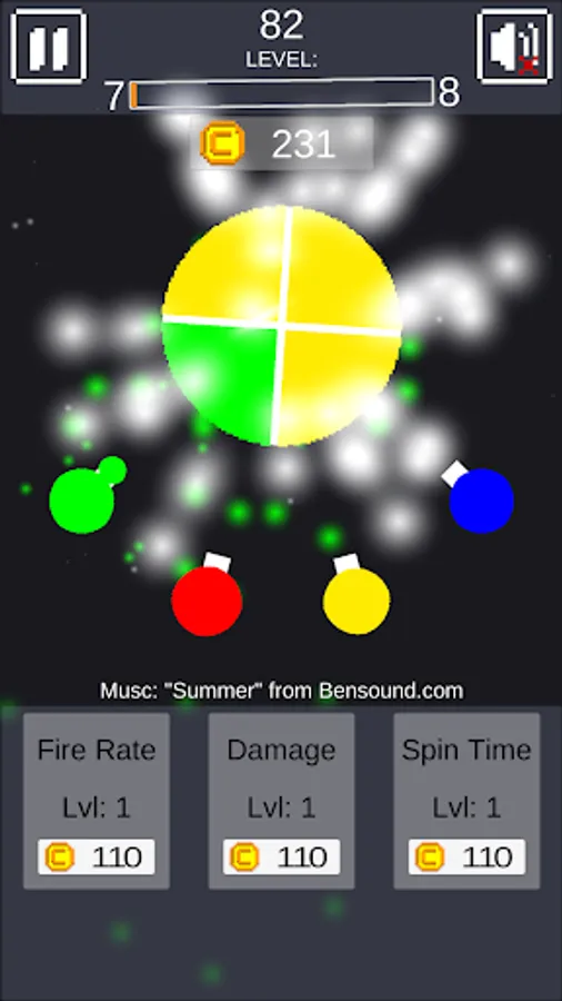 Tap and hold fancy turrets to shoot balls at colorful bosses.