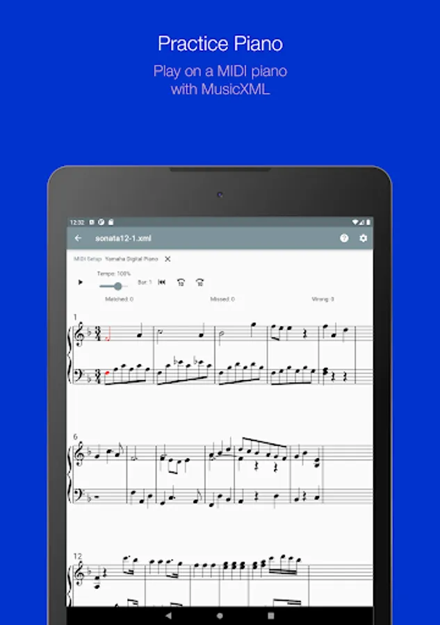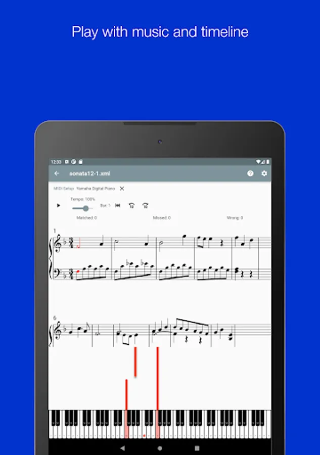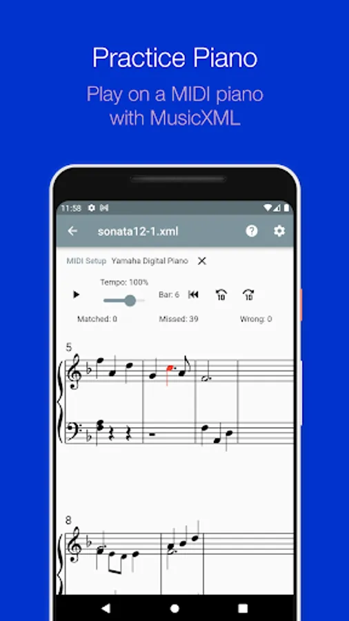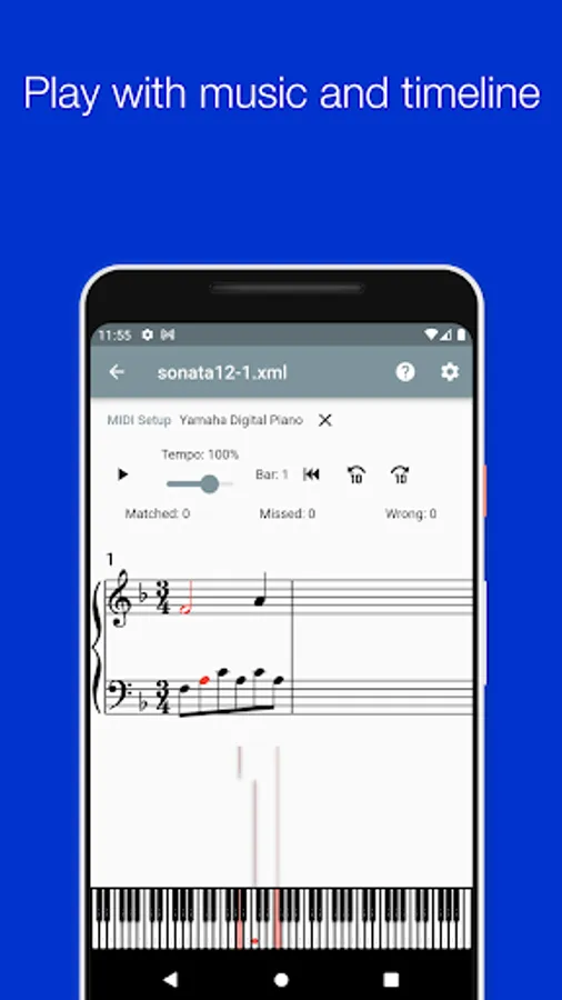 With a MIDI piano, You can play along with a MusicXML file and the notes you played will be compared with the correct notes and wrong notes are shown as you play.