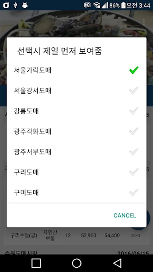 3. 자주 이용하는 도매시장을 지정 하여 가장 먼저 확인 할 수 있도록 하였습니다.