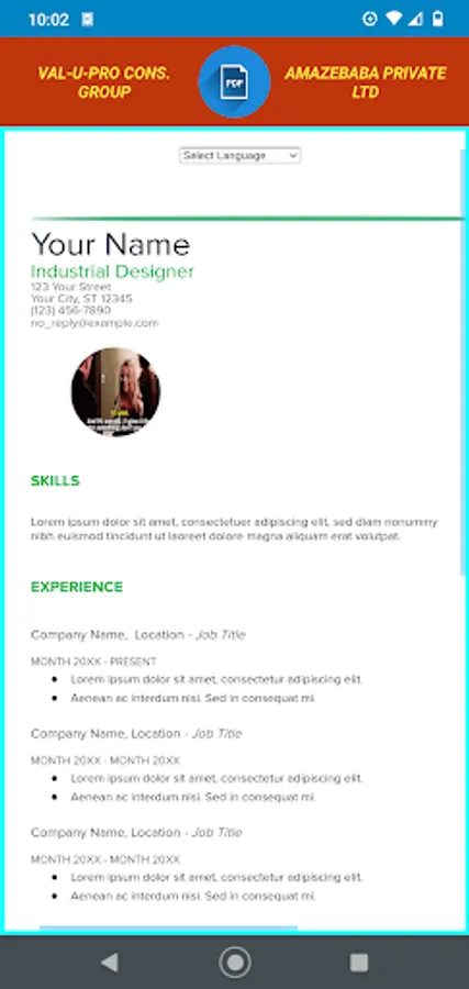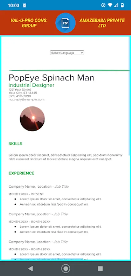 In addition, this application offers a way to translate the CV to your language of choice from the pre-existing list of languages.