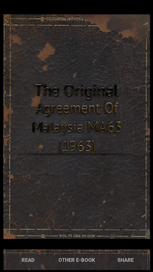 This Ebook app contains MA63 or Malaysia Agreement 1963 between Malaya, Singapore, North Borneo and Sarawak.