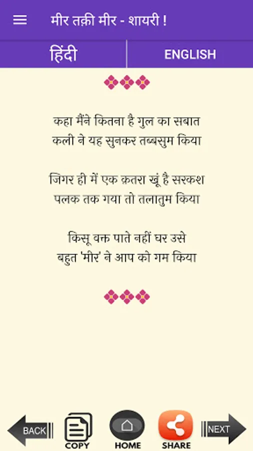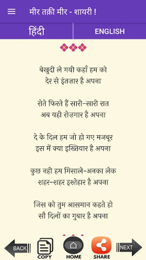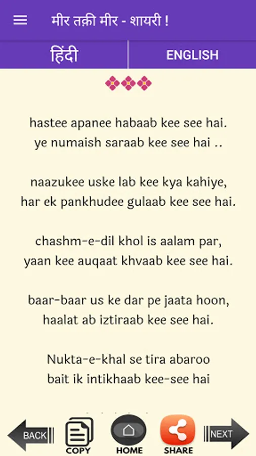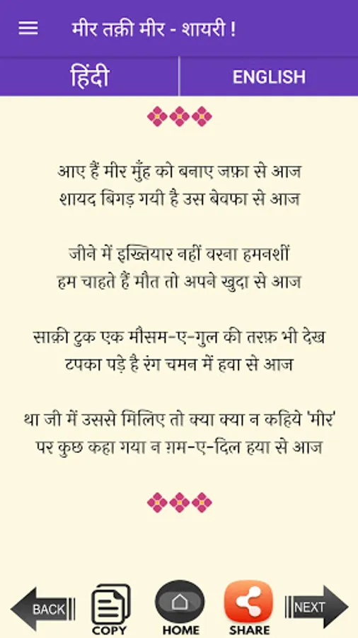 Mir Muhammad Taqi Mir (February 1725 – 20 September 1810), also known as Mir Taqi Mir or "Meer Taqi Meer", was an Urdu poet of the 18th century Mughal India, and one of the pioneers who gave shape to the Urdu language itself. He was one of the principal poets of the Delhi School of the Urdu ghazal and is often remembered as one of the best poets of the Urdu language. His takhallus (pen name) was Mir. He spent the latter part of his life in the court of Asaf-ud-Daulah in Lucknow.