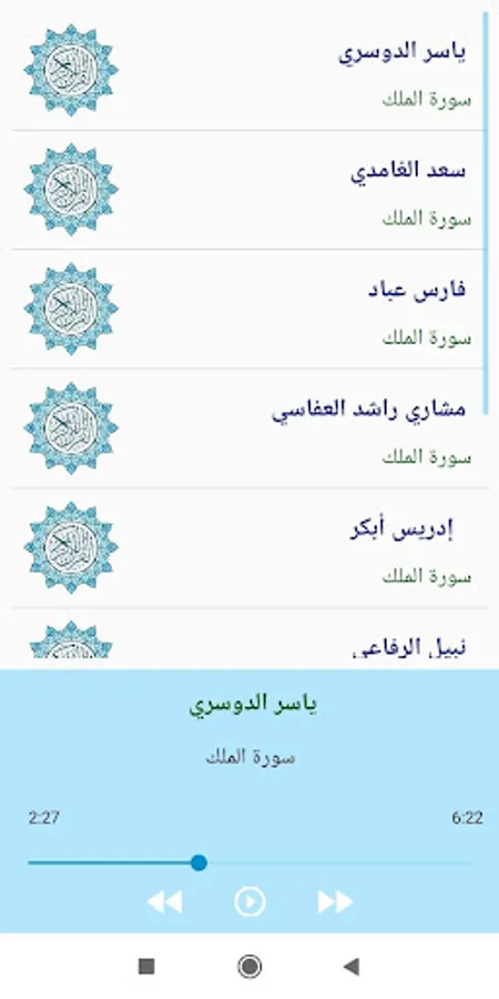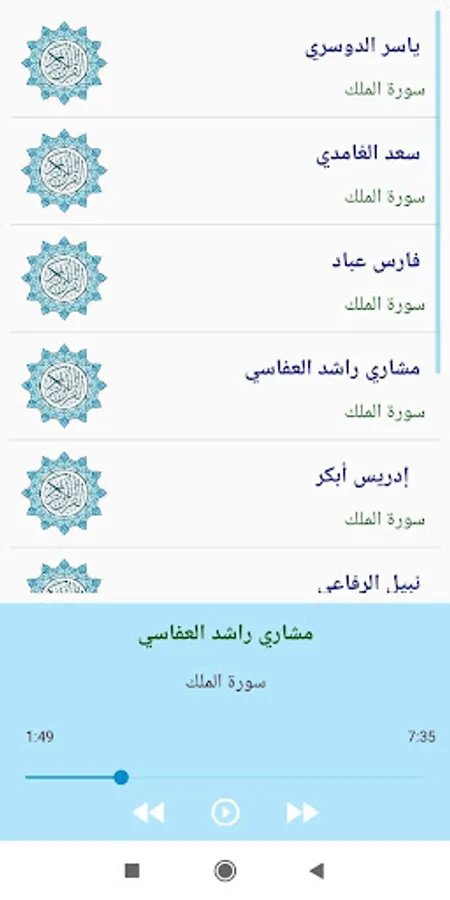 Surat Al-Mulk with a voice of different readers without high quality internet