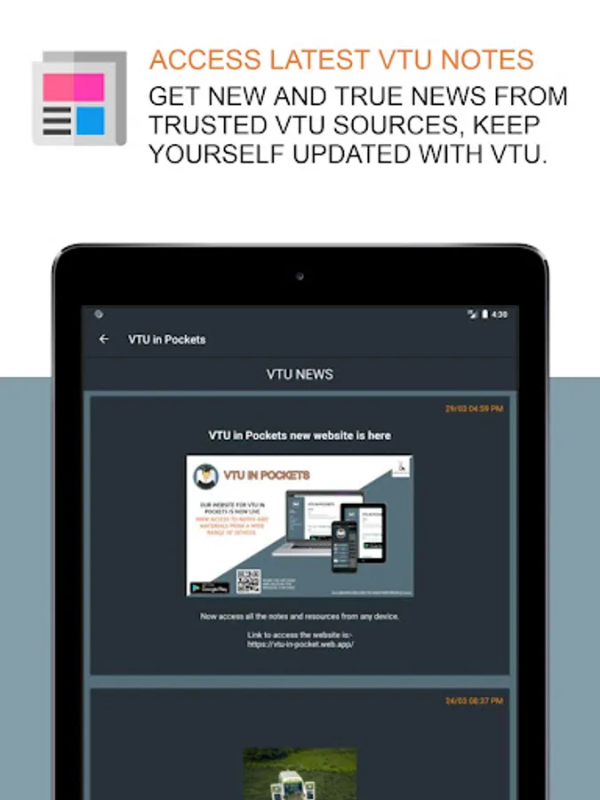News:- latest news related to the VTU will be sent directly to the app