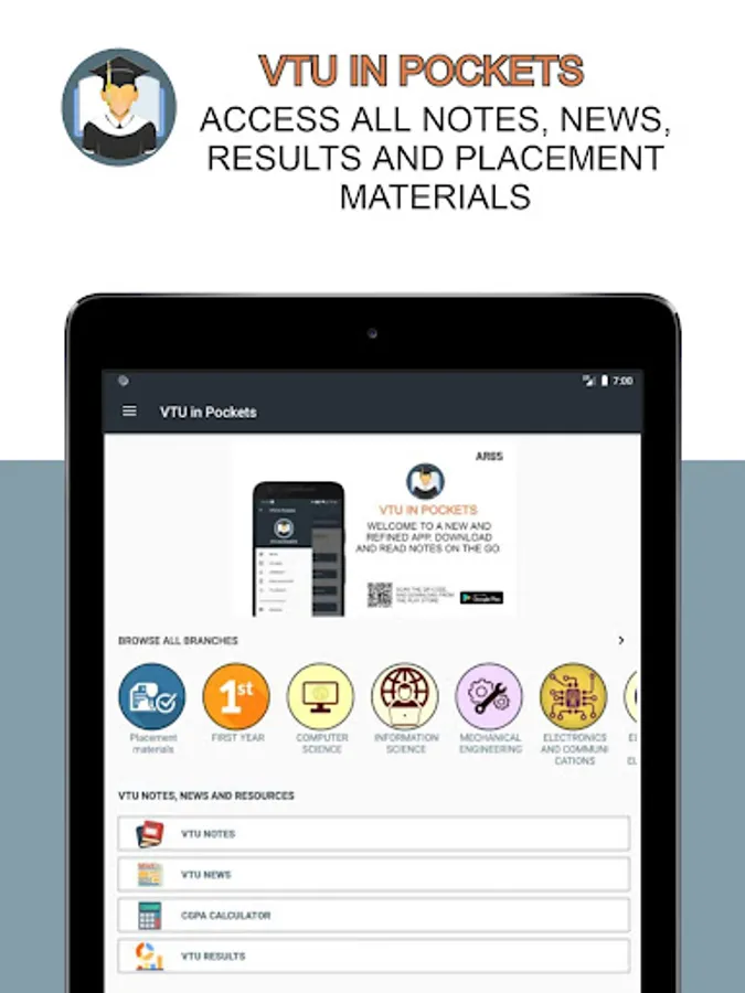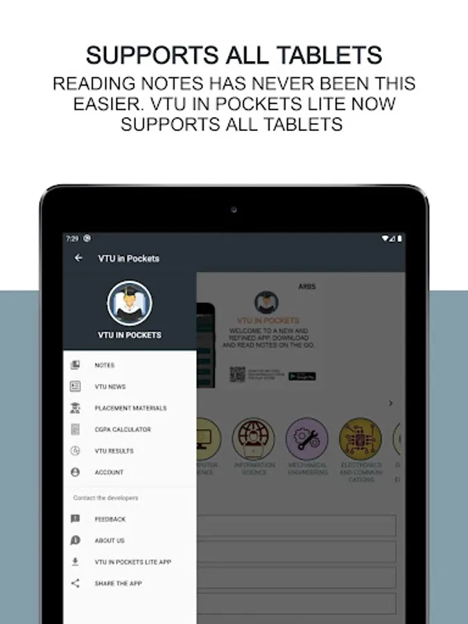 VTU in pockets is an all in one app, dedicated to providing students with materials, notes which ensures their studies online. VTU in pockets team is dedicated to adding notes from different lecturers throughout the state. The students can either choose to read or download the notes. the app provides students to choose between 7 different engineering branches as of now, and more branches will be added in the near future. Downloading notes helps the students to access notes even when they do not have an internet connection. The app is available to be downloaded for free from the play store. The users can use the app for absolutely free and all the contents inside the app are free to access.