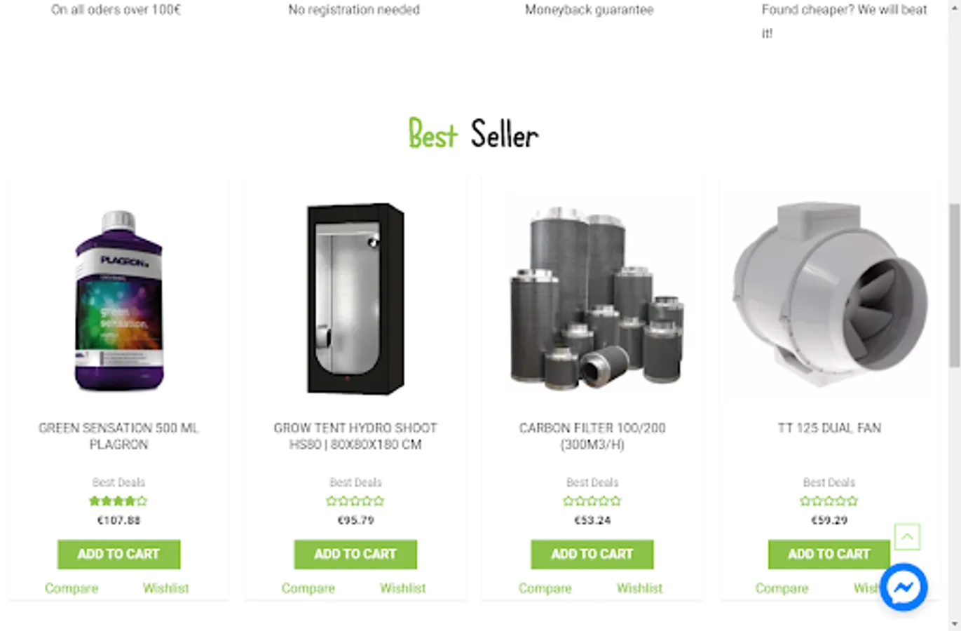 light bulbs, ventilation fans, growrooms, pots, fertilizers, and many other products for agriculture.