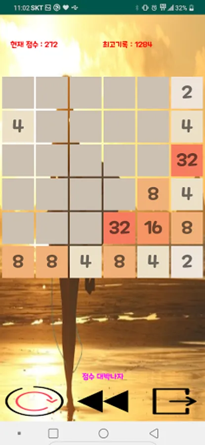 -Example) Increase the score to 2+2=4, 4+4=8, .... 256,512,1024,2048, etc.