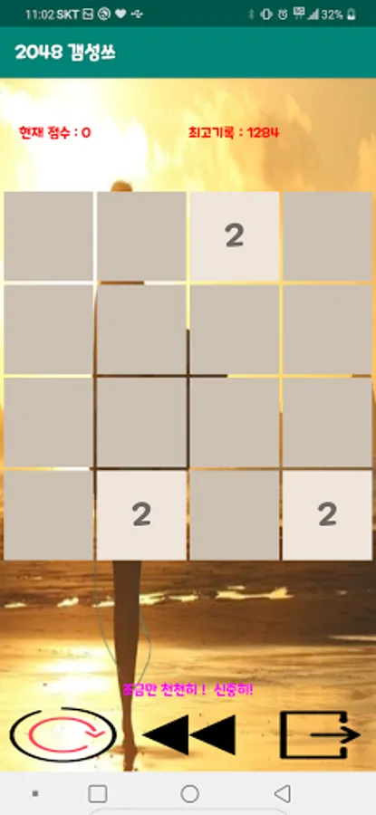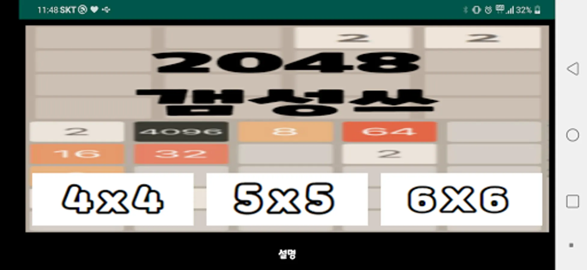 Example) Increase the score to 2+2=4, 4+4=8, .... 256,512,1024,2048, etc.