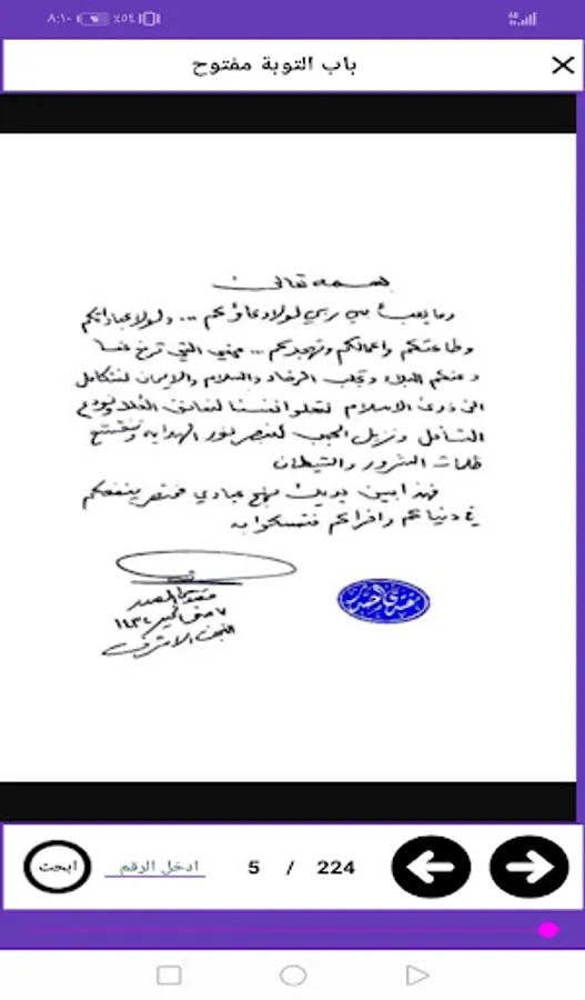 The application of the book, the door of repentance is open (Zad al-Mu'min).