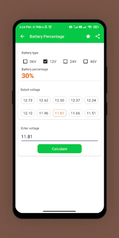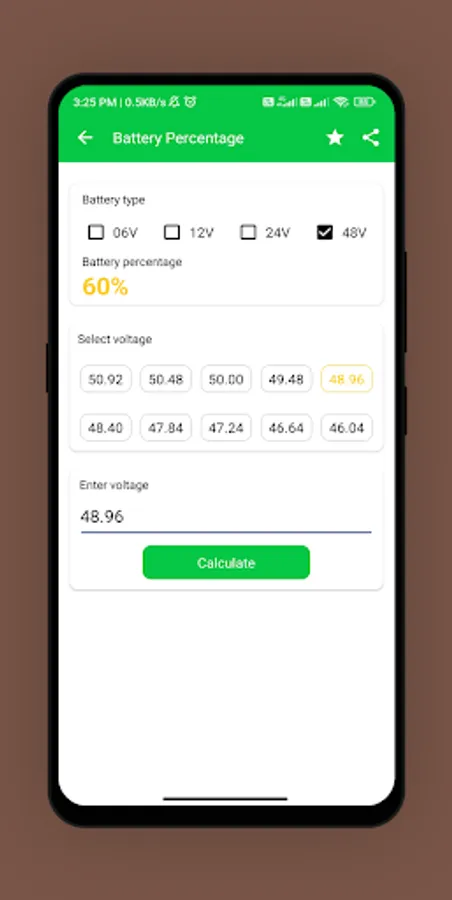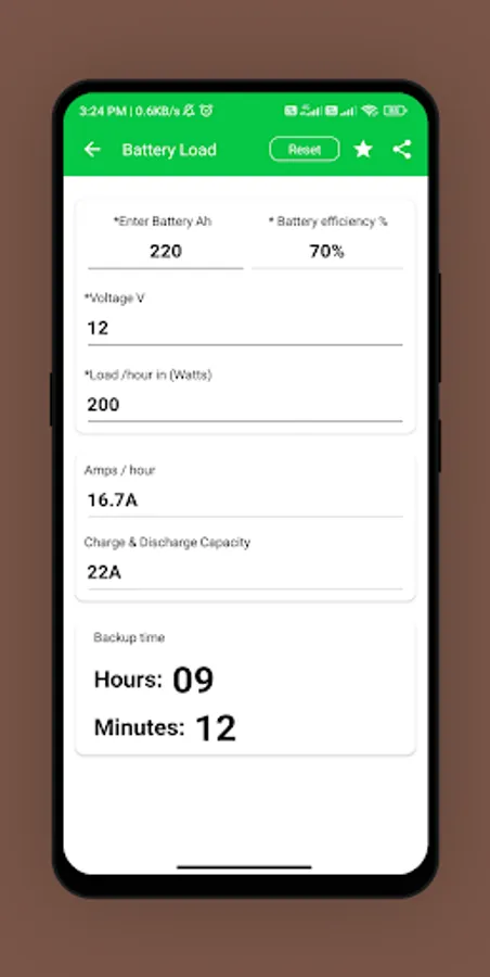 This app calculate the battery backup time and battery percentage by selecting the value in showing on app and adding some requirements values also.